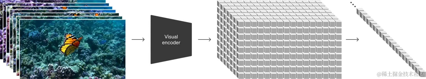 最早在ViT中出现将图片分patch输入给transformer。Sora的有点不太一样,首先通过一个encoder(VAE结构)将视频帧压缩到一个低维度隐式空间(包含时间和空间上的压缩),然后展开成序列的形式送入模型训练,同样的模型预测也是隐式的序列,然后用decoder解码器去解码映射回像素空间形成视频。