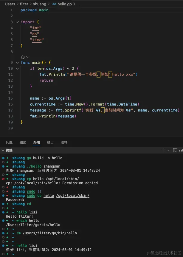 fmt.Println("请提供一个参数,例如:hello xxx")