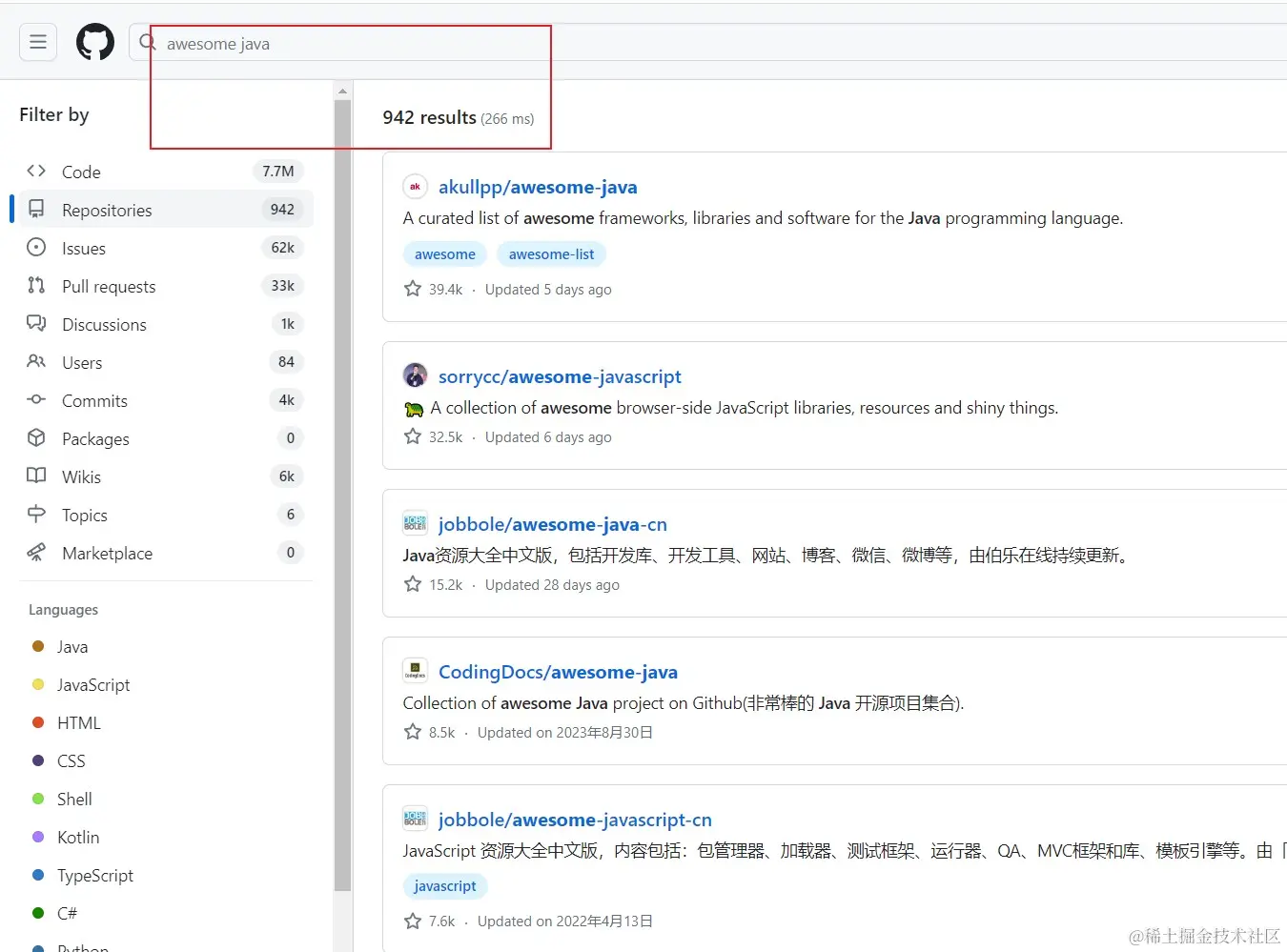 比如搜索优秀的java相关的项目,包括框架、教程等