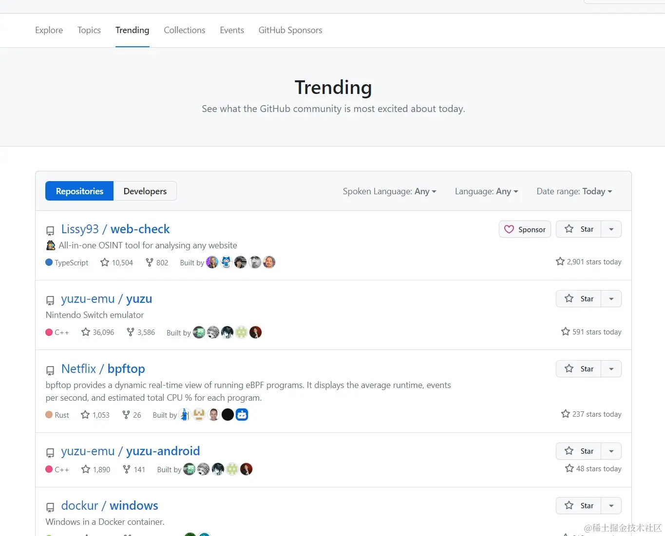 - GitHub Trend 允许你查看当前在 GitHub 上受欢迎的项目,根据不同的编程语言和时间范围进行筛选