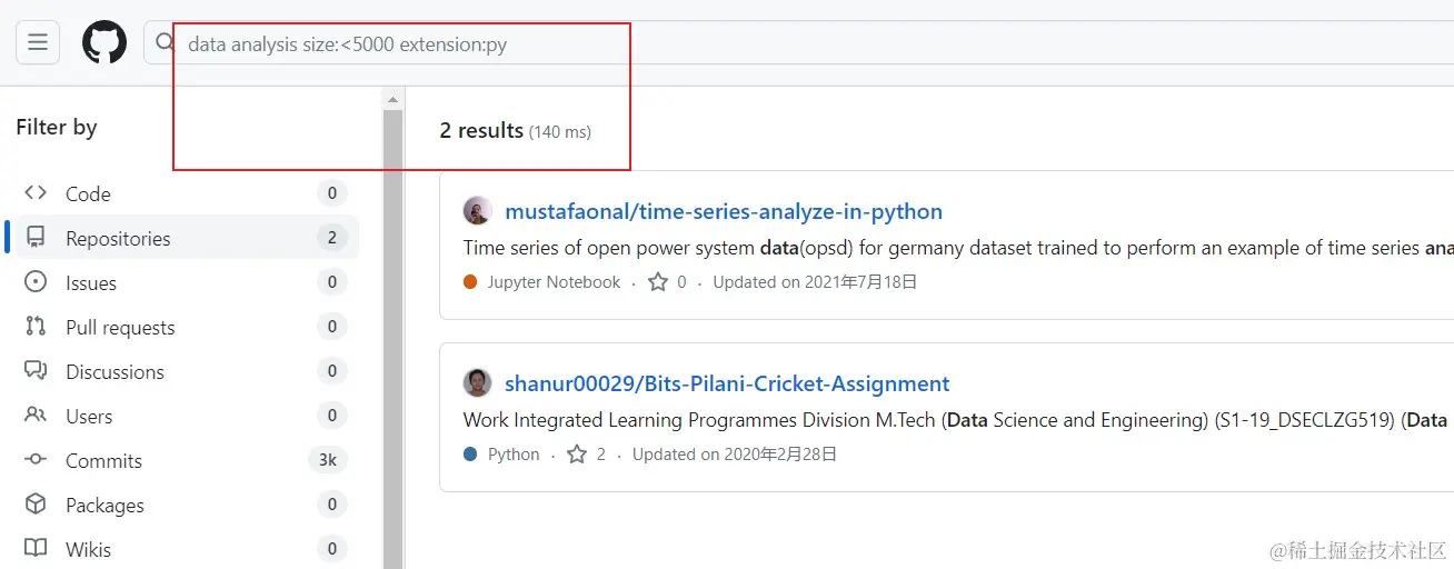 | data analysis size:<5000 | 搜索仓库小于5000KB的数据分析项目(默认单位 KB) |