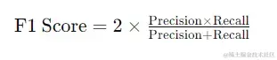 F1分数是精准率和召回率的调和平均值,它综合考虑了模型的准确性和识别能力。F1分数越高,说明模型的综合性能越好。计算公式为: