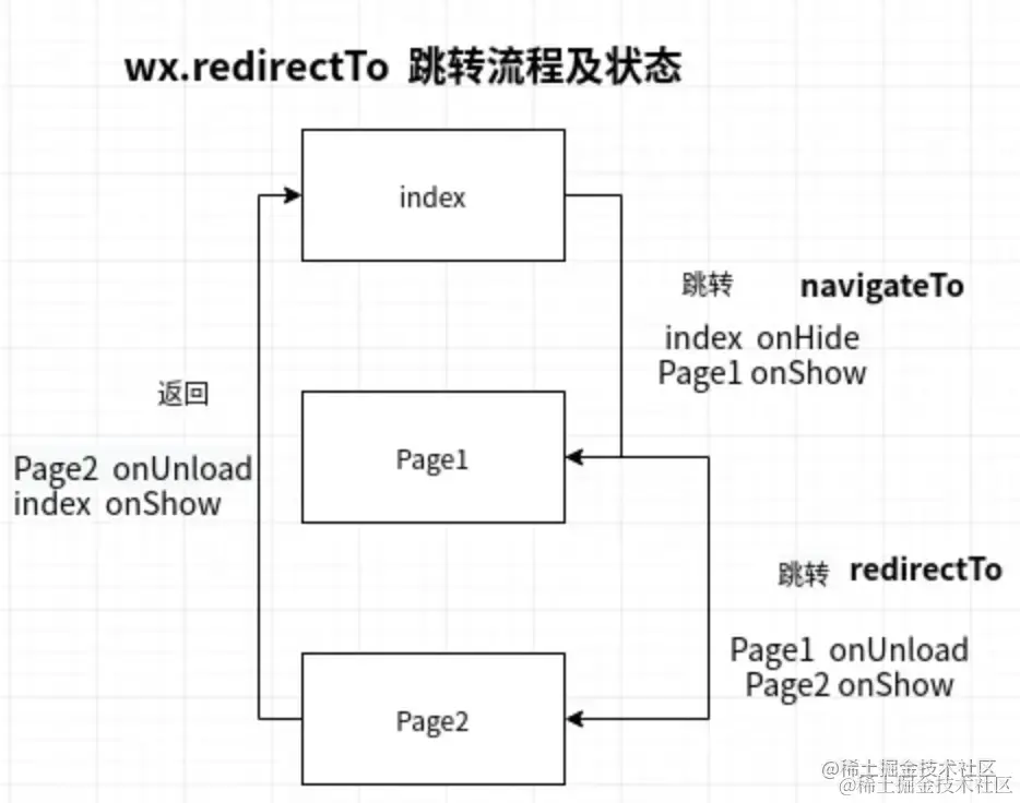 - navigateBack 页面不断出栈,直到目标返回页,新页面入栈