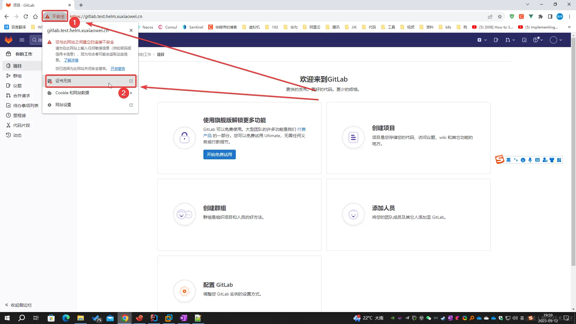 - 浏览器访问域名 gitlab.test.helm.xuxiaowei.cn