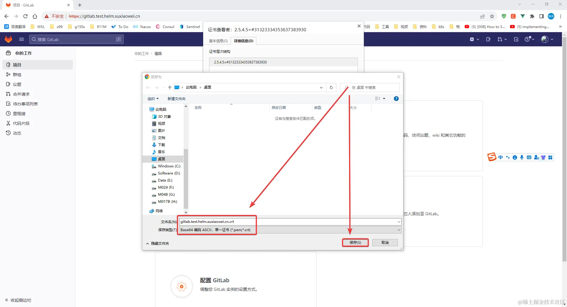 解决方案是使用颁发给域名 gitlab.test.helm.xuxiaowei.cn 的证书,可以使用自己的域名去各大云厂商免费申请,或者使用自己根据域名 gitlab.test.helm.xuxiaowei.cn 生成的证书