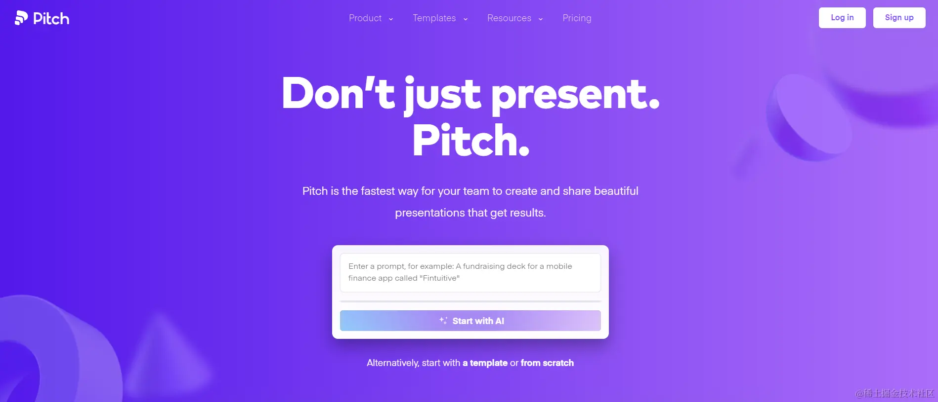 Pitch 可以帮助你在几秒钟内创建时尚的演示文稿。选择你的模板并添加内容,你很快就会有一个漂亮的文稿准备分享。该平台允许你分享链接、实时展示你的演示文稿,甚至可以将其嵌入到网页上,这样你可以随时引导观众查看。它具有强大的集成能力,可以与 Slack、Vimeo 和 YouTube 等技术栈中的首选工具连接。