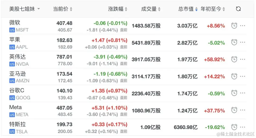 但这一切都不妨碍华尔街在疯狂爆炒AI,将微软推到全球市值第一的宝座、将英伟达在短短一年内市值推高到2万亿美元的门槛,截止至北京时间2月28日美股盘前:美股七姐妹的市值排行榜为1.微软(3.03万亿美元);2.苹果(2.82万亿美元);3.英伟达(1.97万亿美元);4.亚马逊(1.80万亿美元);5.谷歌(1.74万亿美元);6.Meta(1.24万亿美元);7.特斯拉(0.63万亿美元)。
