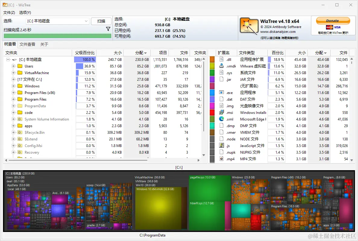 PS: 类似的工具还有 TreeSize 和 SpaceSniffer