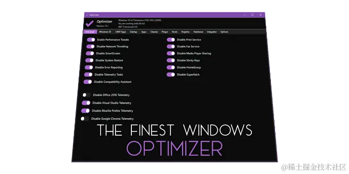 Optimizer是一个面向Windows系统的优化工具,旨在提升计算机性能、加强隐私和安全。