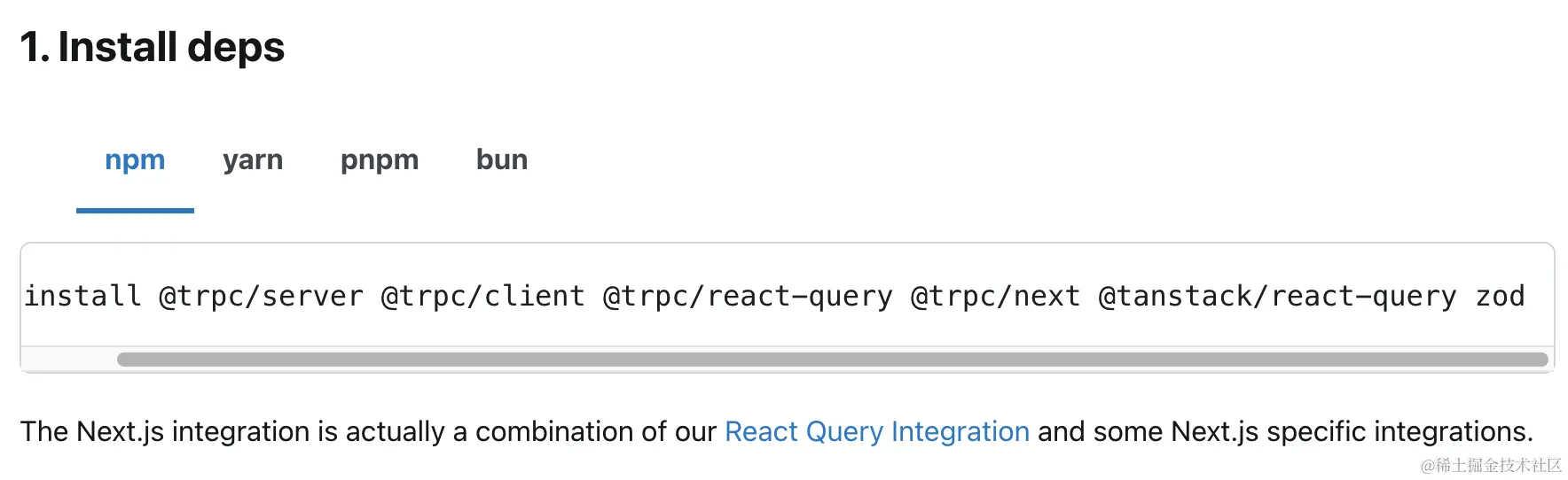 npm install @trpc/server @trpc/client @trpc/react-query @trpc/next @tanstack/react-query zod