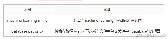 关键字 in:file 搜索内容 -