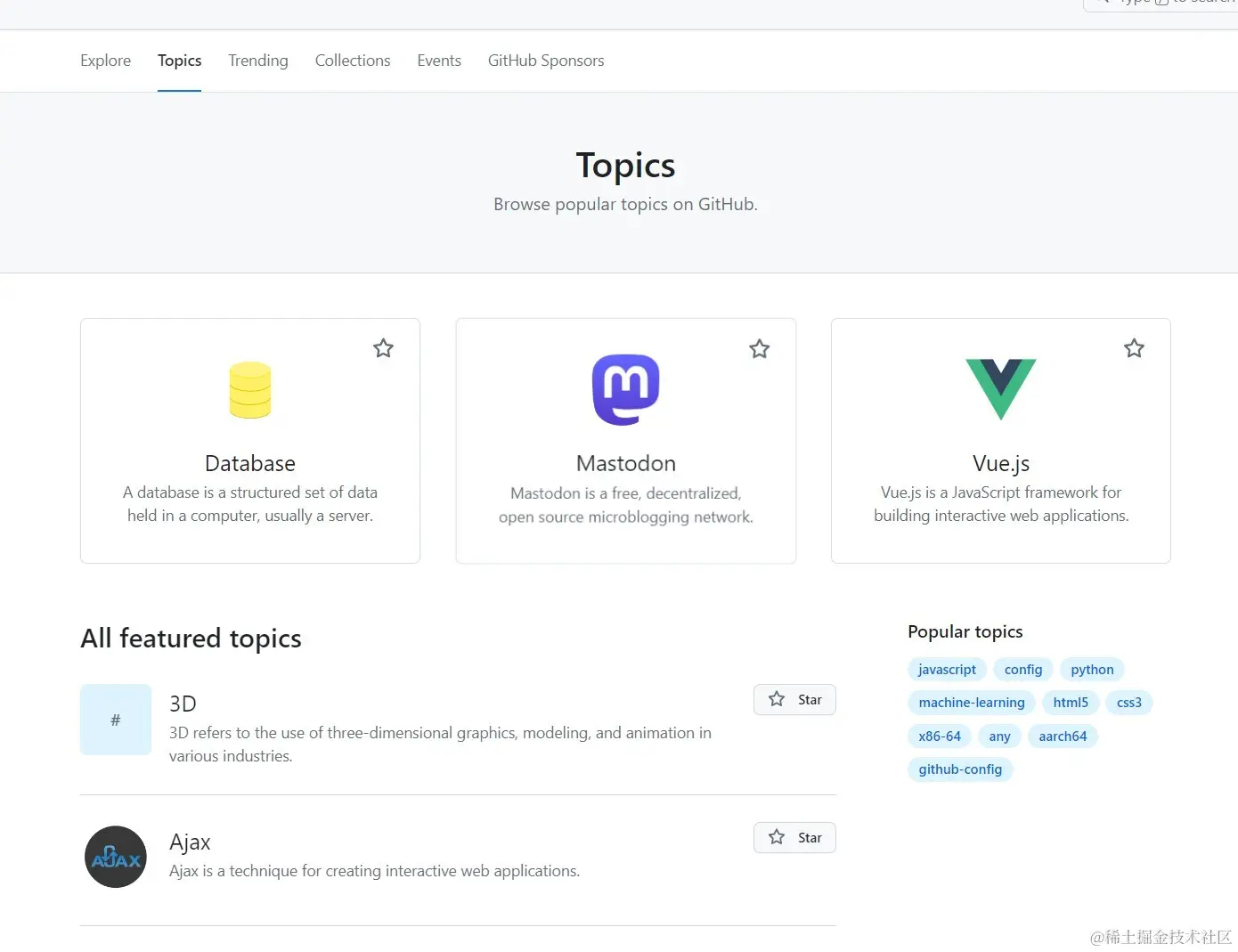 - GitHub Topic 是一种对项目进行标签分类的方式。GitHub 上的项目可以被分配到不同的主题标签,使得你可以通过主题来浏览和发现项目。
