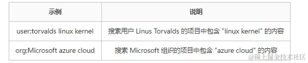 user:用户名 关键字 - 搜索特定组织的项目:语法: