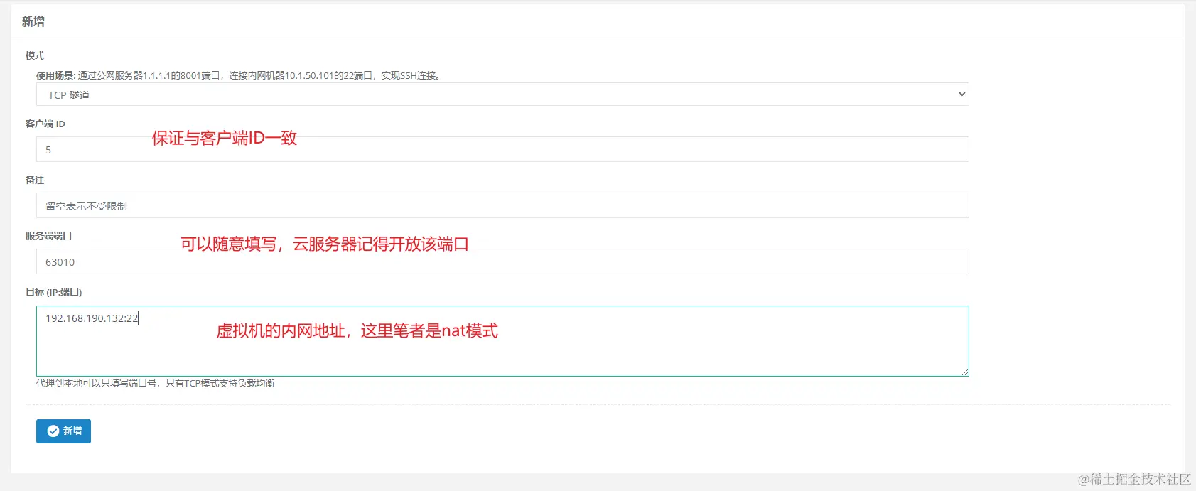 新增TCP隧道