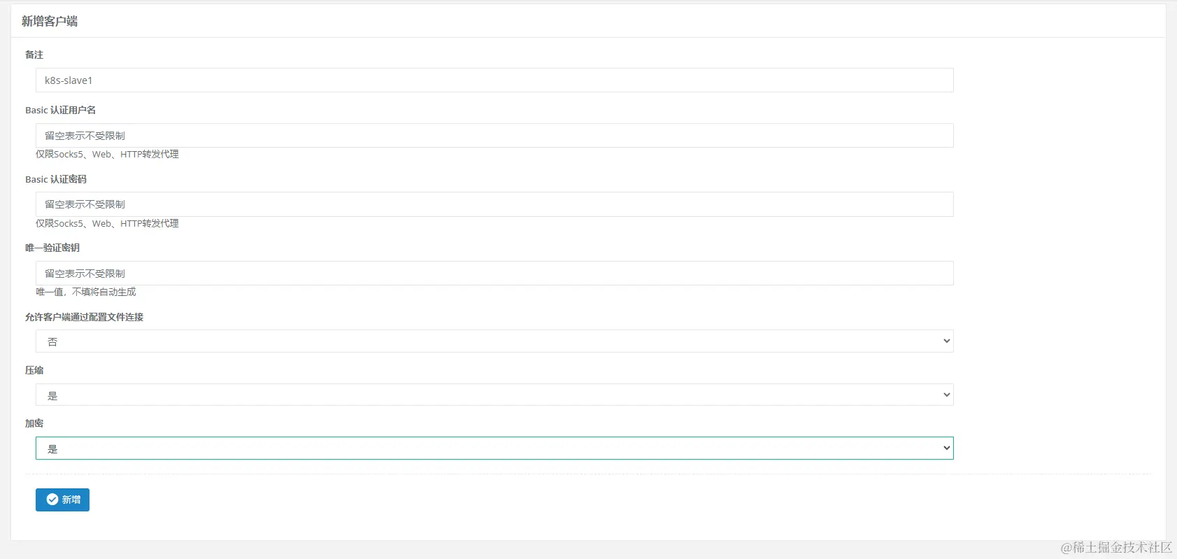 进入网页端后,新增客户端