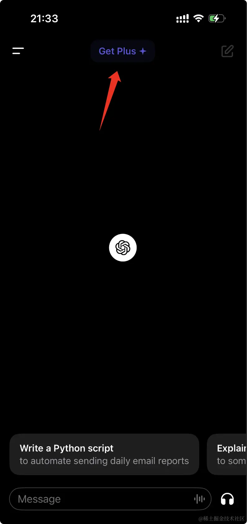 安装ChatGPT后使用已经注册的账户进行登录,打开 ChatGPT iOS 客户端,找到账户设置进入 Settings,点击【 Upgrade to ChatGPT Plus】按钮,或在聊天界面直接点击【Get Plus】进行支付,订阅成功后,你就可以在App或者网页端(chat.openai.com/)正常使用 ChatGPT Plus。