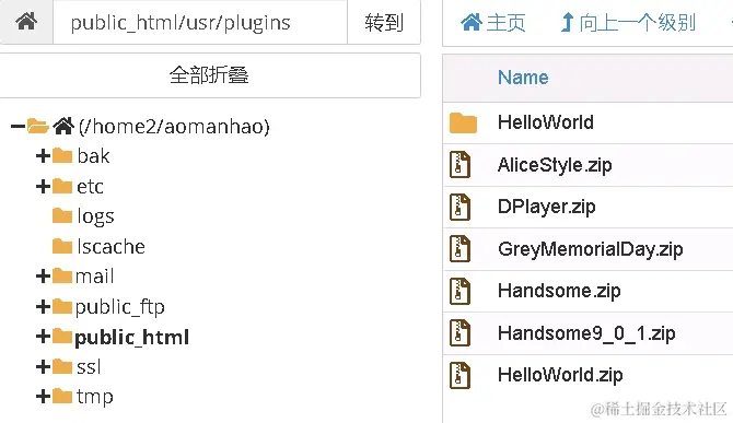 主机博客插件界面如下,屏蔽其他插件 ,保留Typecho官方插件。