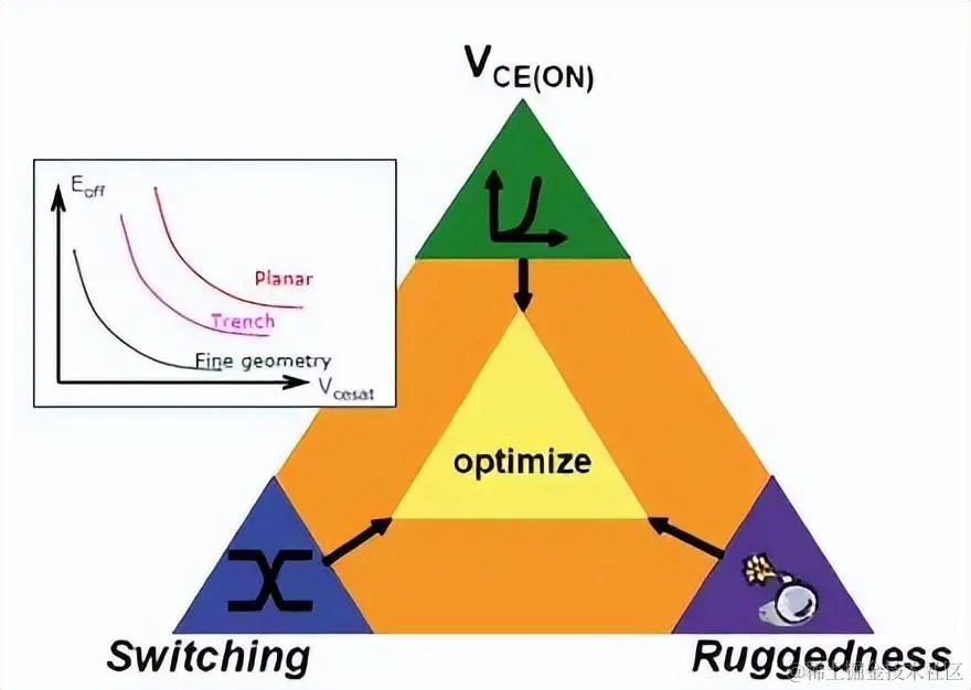 △ 图3 IGBT 开关损耗、通态压降和可靠性的三者关系