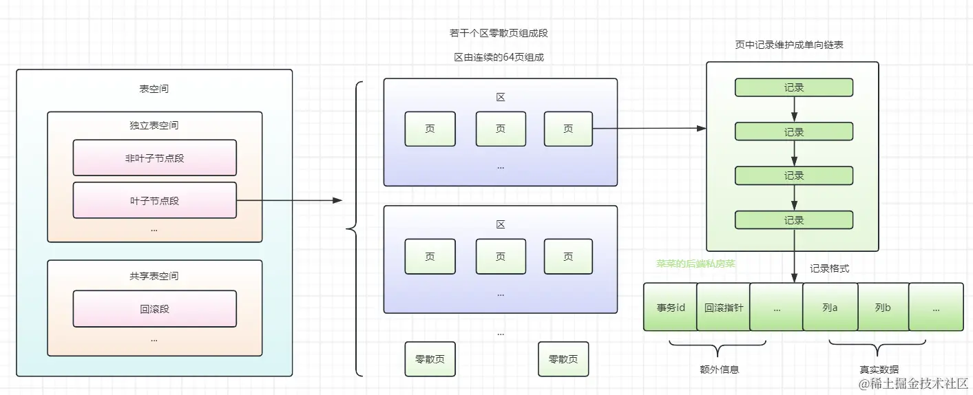 为了方便管理,表空间逻辑上使用段进行管理,段由区、零散页组成