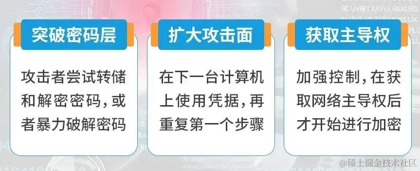 Conti 外泄文档介绍了网络攻击方法及其传播目标,攻击方法可以概括为“收集凭据、传播、重复”。假设黑客可以访问网络中的某台计算机,具体操作可分为以下步骤: