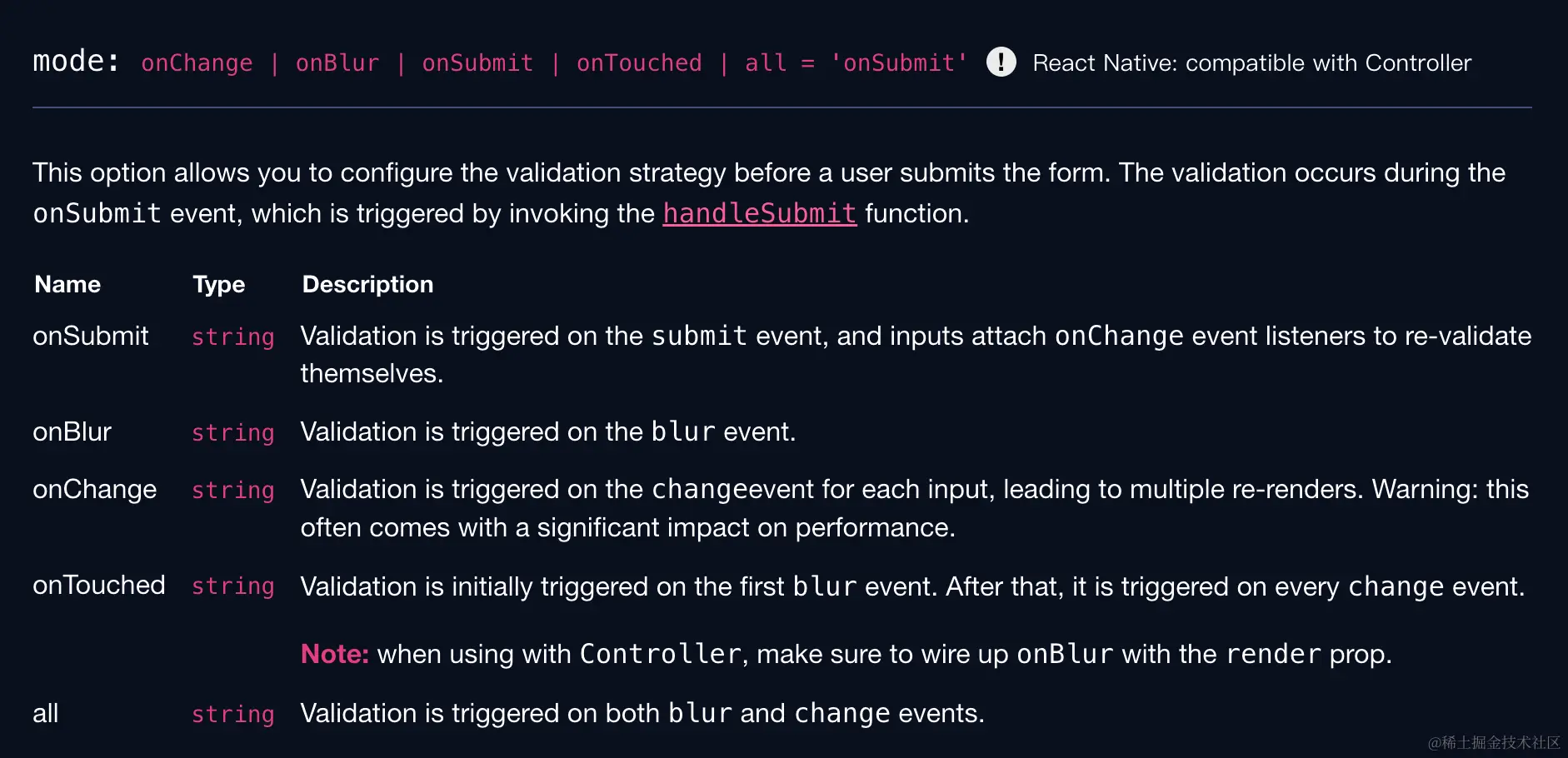 此选项允许您在用户提交表单之前配置验证策略。验证发生在事件期间,该事件是通过调用函数触发的