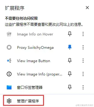 第一步:打开浏览器,点击右上角的 “扩展程序” 菜单,选择 “管理扩展程序” 。