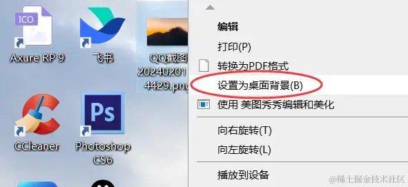步骤2:在弹出的右键菜单中,选择 【设置为桌面背景】 选项。