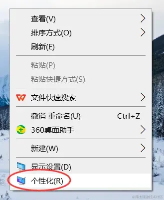 步骤1:在电脑桌面上找到空白区域,右键点击鼠标。在弹出的右键菜单中,选择 【个性化】 选项。