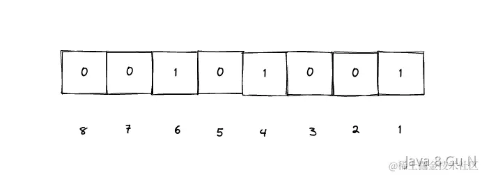 这样,把40亿个数字都放到BitMap之后,所有位置上是1的表示存在,不为1的表示不存在,相同的数据只需要设置一次1就可以了,那么,最终就把所有是1的数字遍历出来就行了。