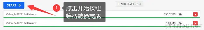 点击 【START】 按钮,直接在网页上进行视频格式转换。转换完成后,可以在平台上进行分享。