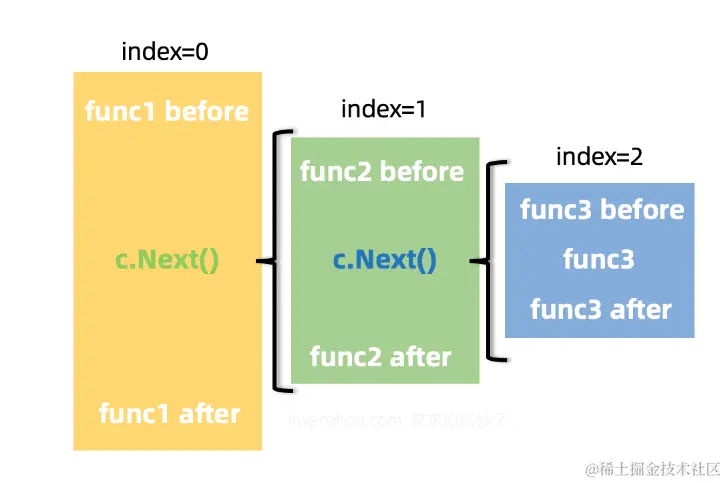通过索引遍历HandlersChain链条,从而实现依次调用该路由的每一个函数