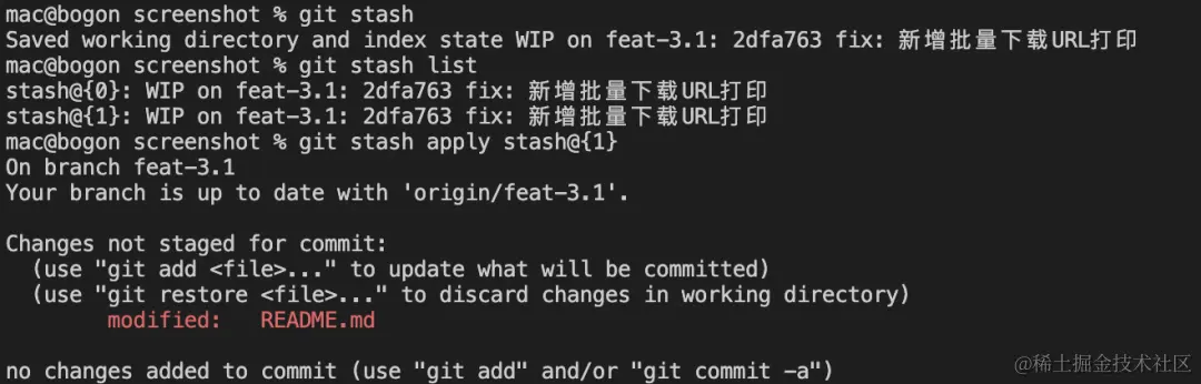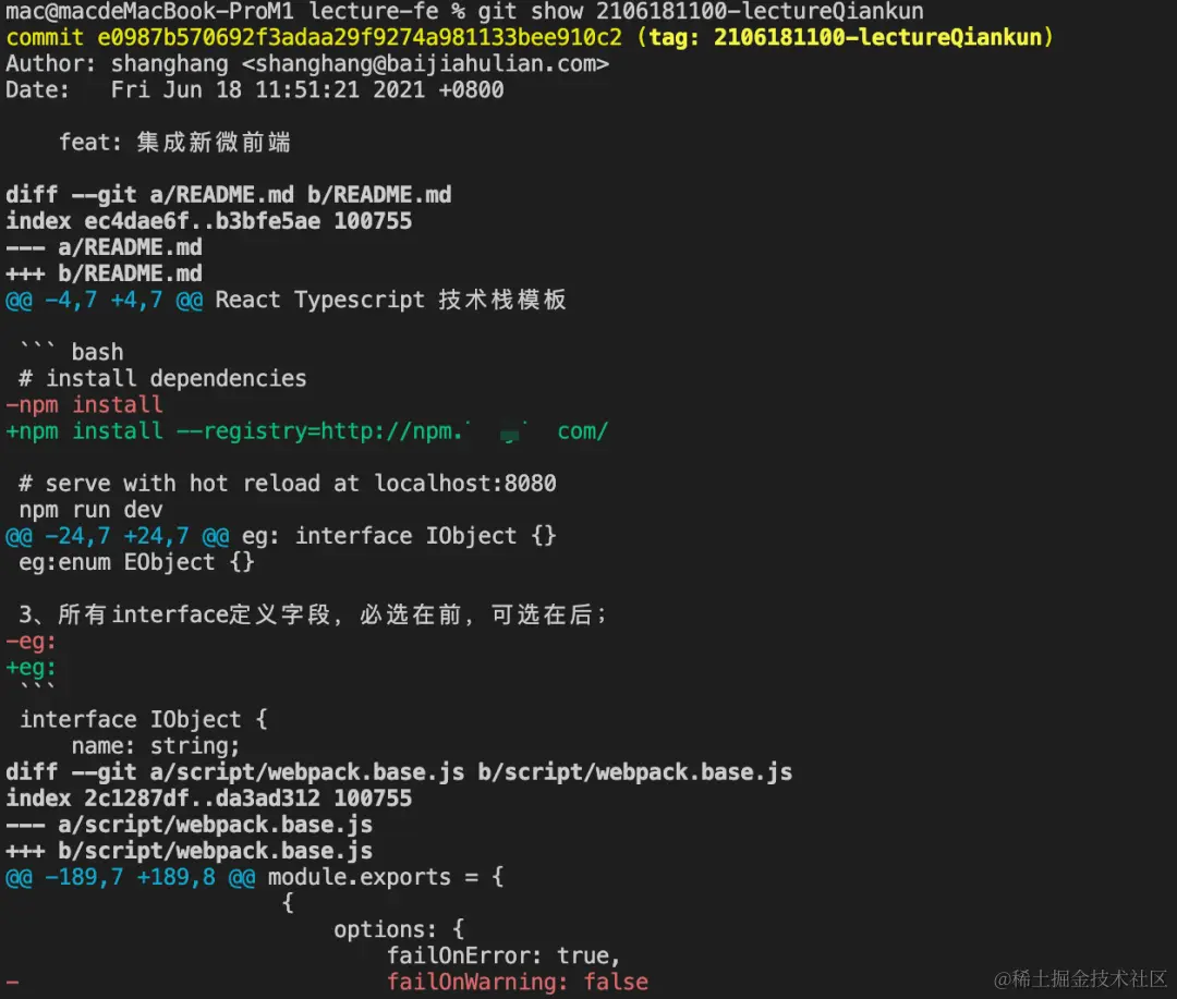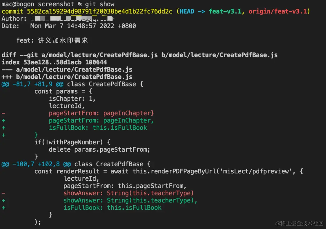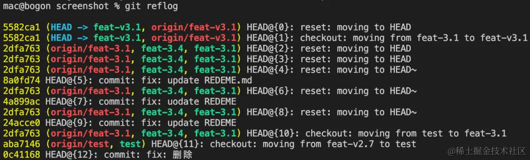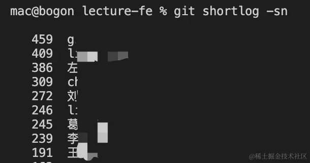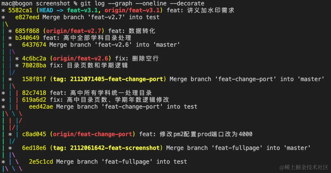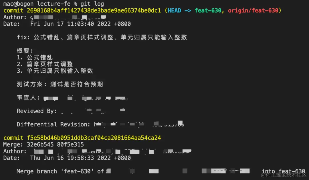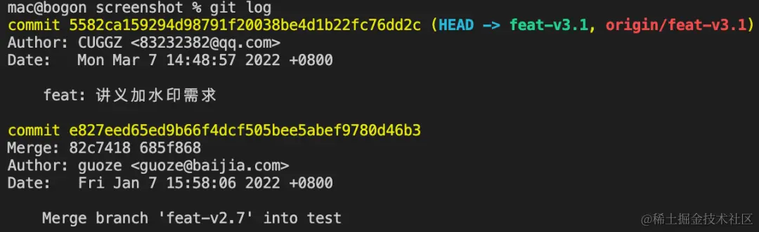 可以看到,终端上输出了该分支近期的提交记录,它包含了所有贡献者的提交。