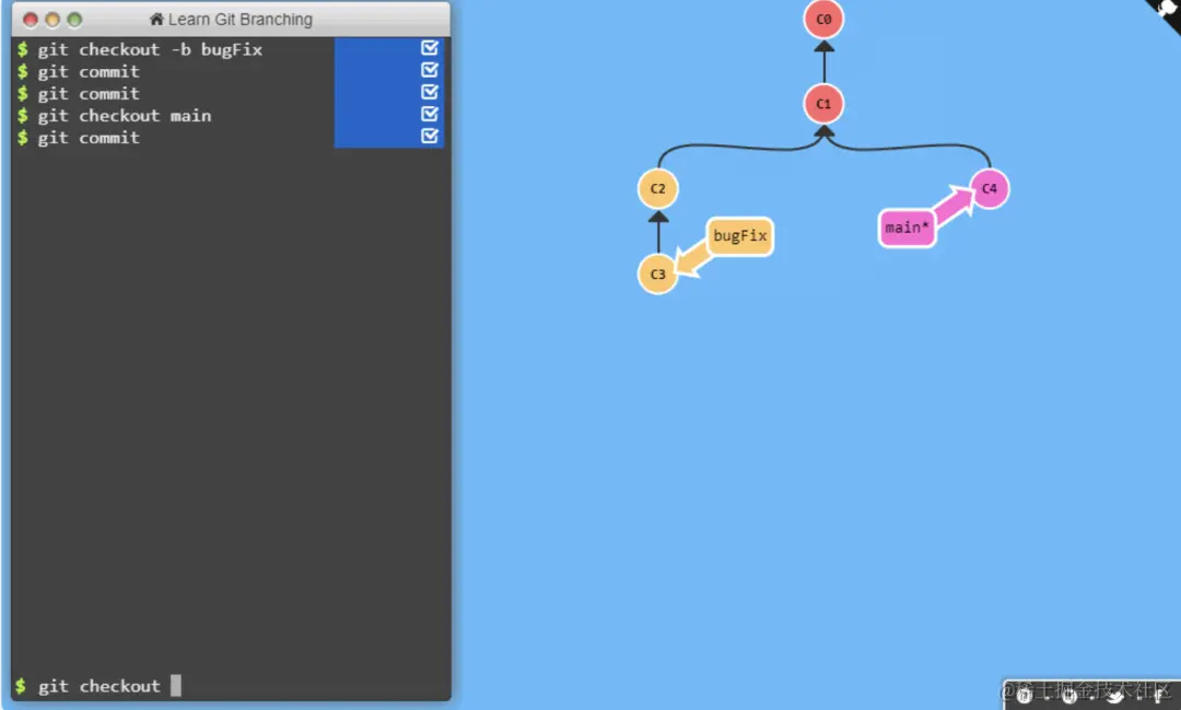 LearnGitBranching 是一个 git 存储库可视化工具、沙箱和一系列教程和挑战。它的主要目的是帮助开发人员通过可视化的力量来理解 git。这是通过不同级别的游戏来熟悉不同的git命令来实现的。