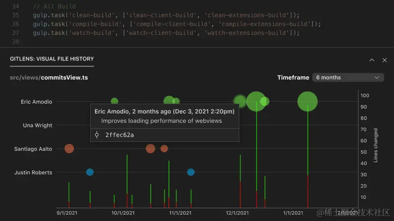 GitLens 是一个VS Code插件,可以用来查看项目的提交记录、文件修改记录、显示每行代码的提交记录等。通过丰富的可视化和强大的比较命令获得有价值的见解。