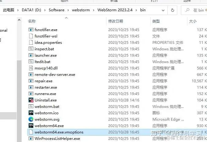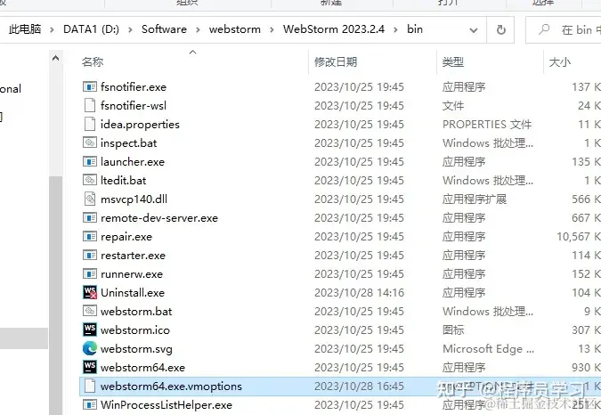 2、找到WebStorm安装bin目录里面webstorm64.exe.vmoptions的文件,用[文本编辑器]打开。
