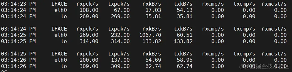 - rxpck/s:这是每秒接收的数据包数量(Received Packets per Second)