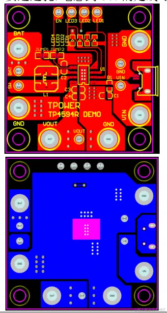 2、BAT 电容既要靠近芯片 BAT 脚又要靠近电感;BAT电容的地线尽量接在大面积地线上,不要经过较小的地线再到芯片和大面积地。
