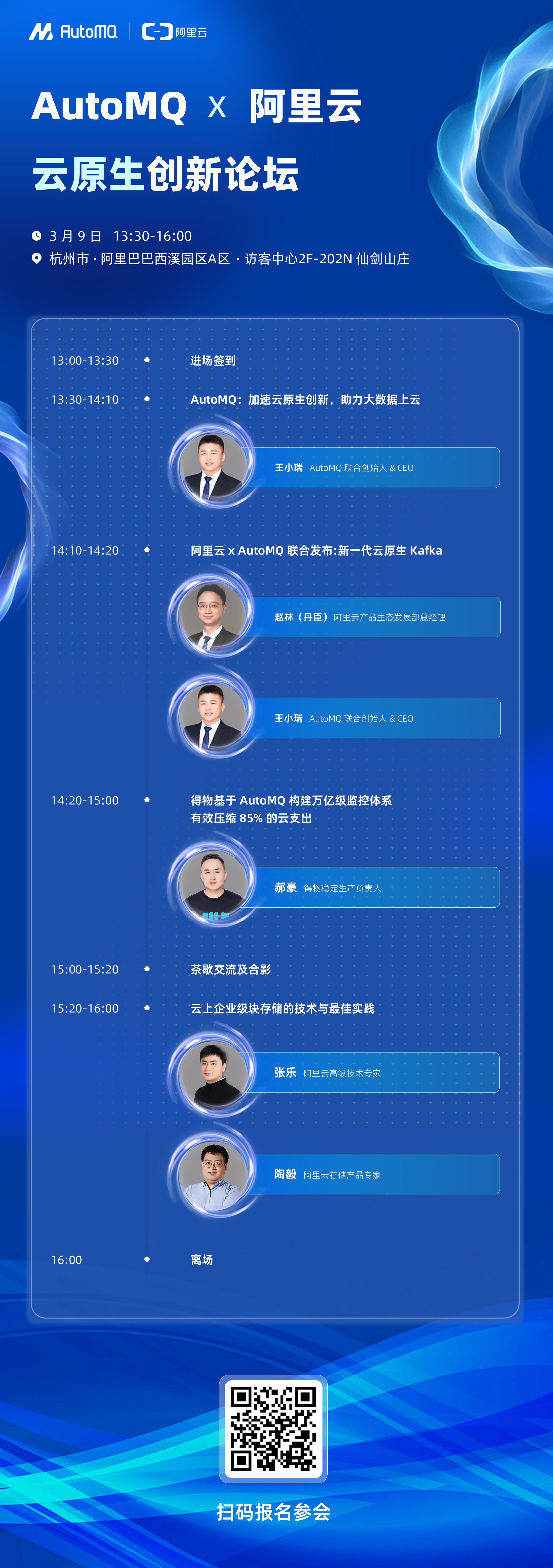 本次活动中,我们为参与互动的伙伴准备了精美周边礼品。快来扫码或者点击活动行链接报名,与 AutoMQ & 阿里云一起见证“新一代云原生 Kafka ”重磅发布!现场揭秘更多技术细节!