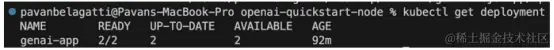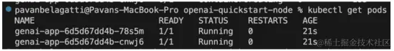 以下检查一下应用程序的部署状态,看看所需的pod是否按预期运行。