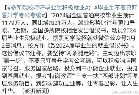 新的一周开始,相信大家看到了热搜上的“院校呼吁积极就业”词条,就知道学校有多操心就业这事了。