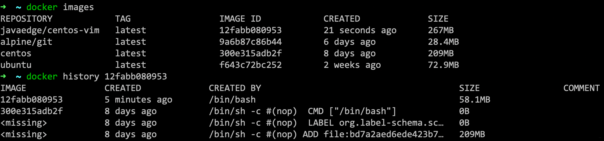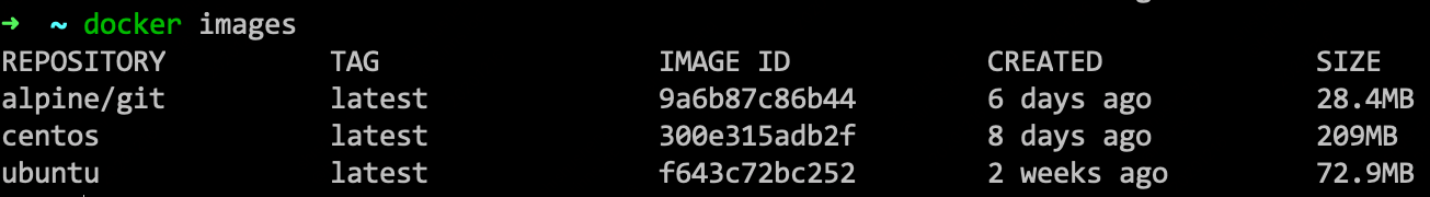 REPOSITORY TAG IMAGE ID CREATED SIZE