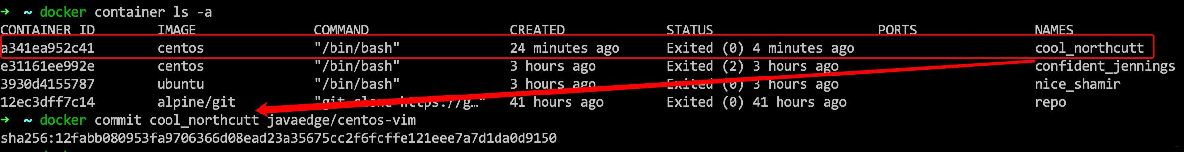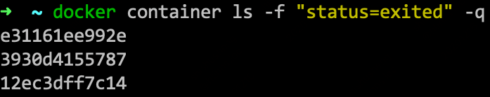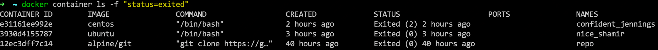 CONTAINER ID IMAGE COMMAND CREATED STATUS PORTS NAMES