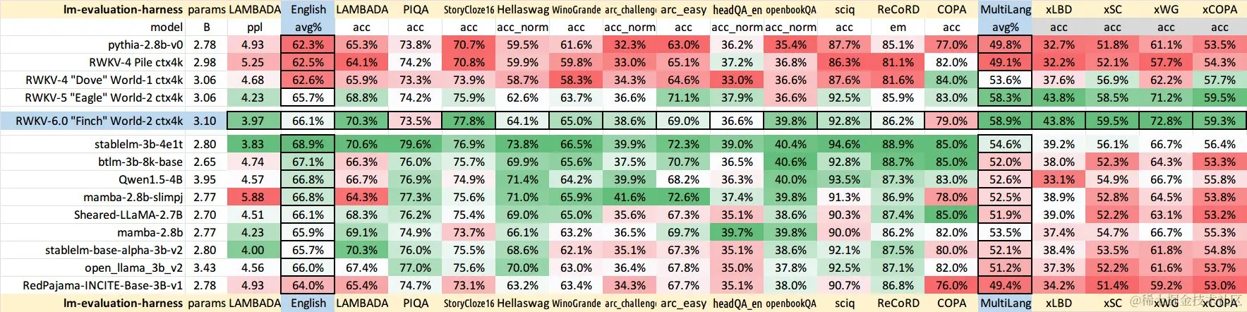 2024 年 2 月 29 日,经过密集的精心训练与严格的测试验证,RWKV 开源基金会宣布其划时代的 RWKV-6-Finch 3B 模型正式向全球开源。