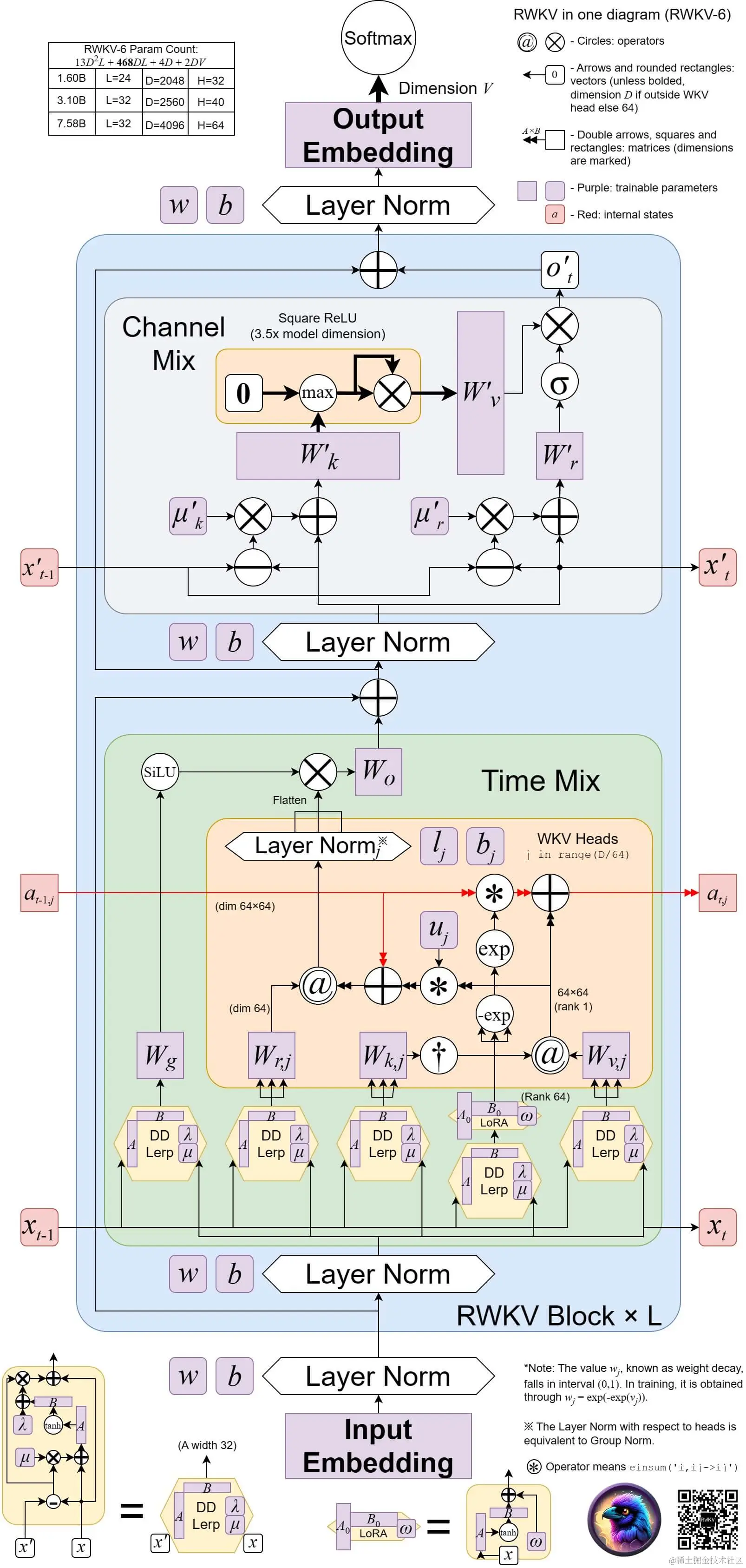 我们的最新版本是 RWKV V6 ,架构图如下: