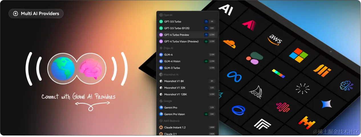 | Moonshot AI (月之暗面) | 集成了 Moonshot 系列模型,这是一家来自中国的创新性 AI 创业公司,旨在提供更深层次的会话理解 |