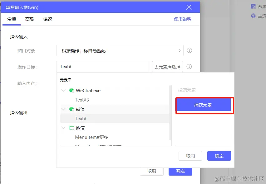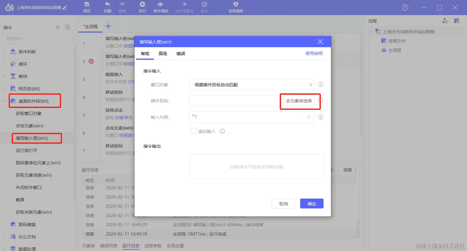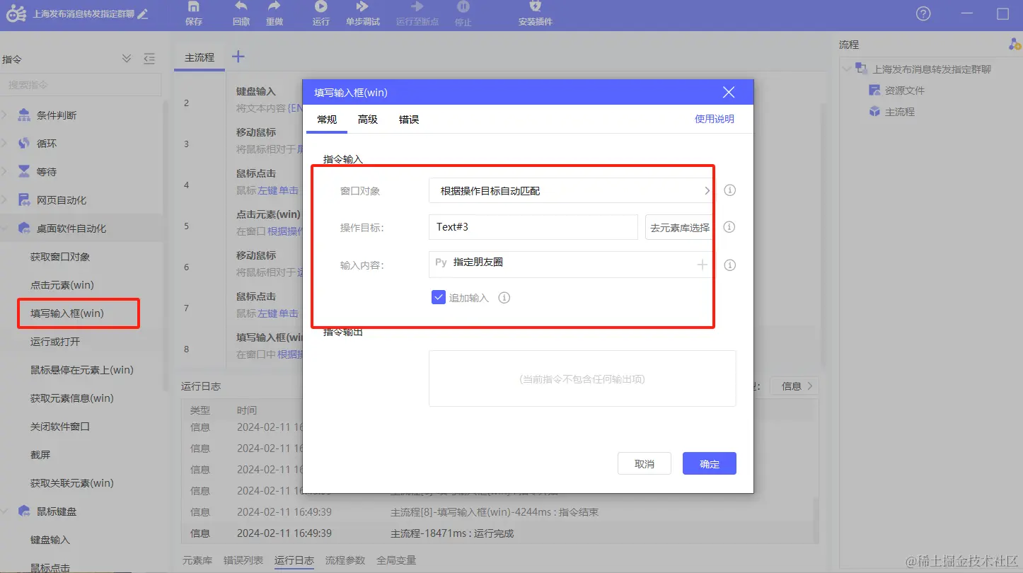 双击填写输入框指令,窗口对象选择根据目标匹配