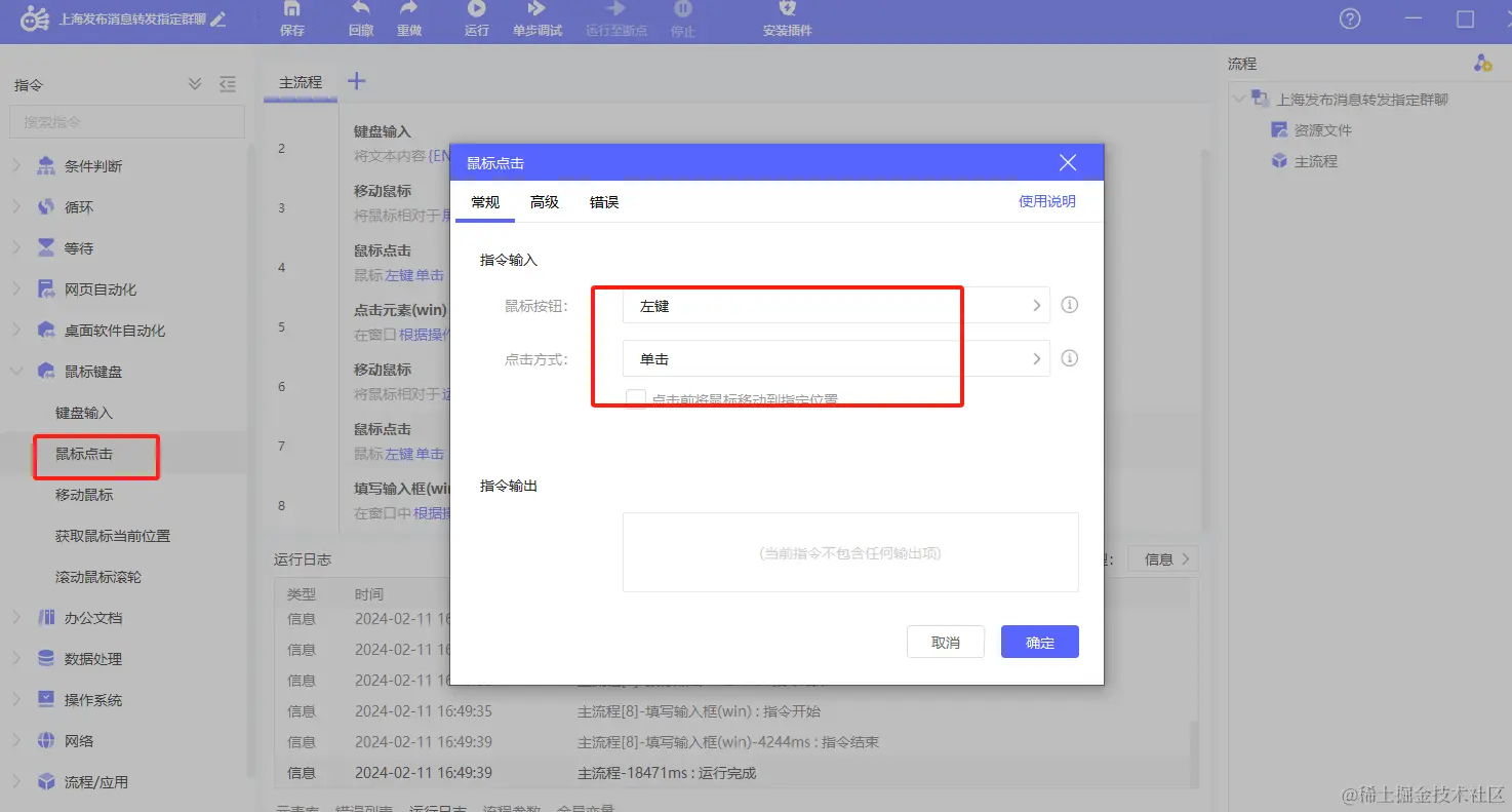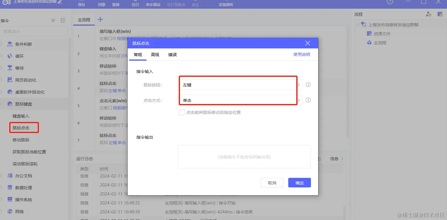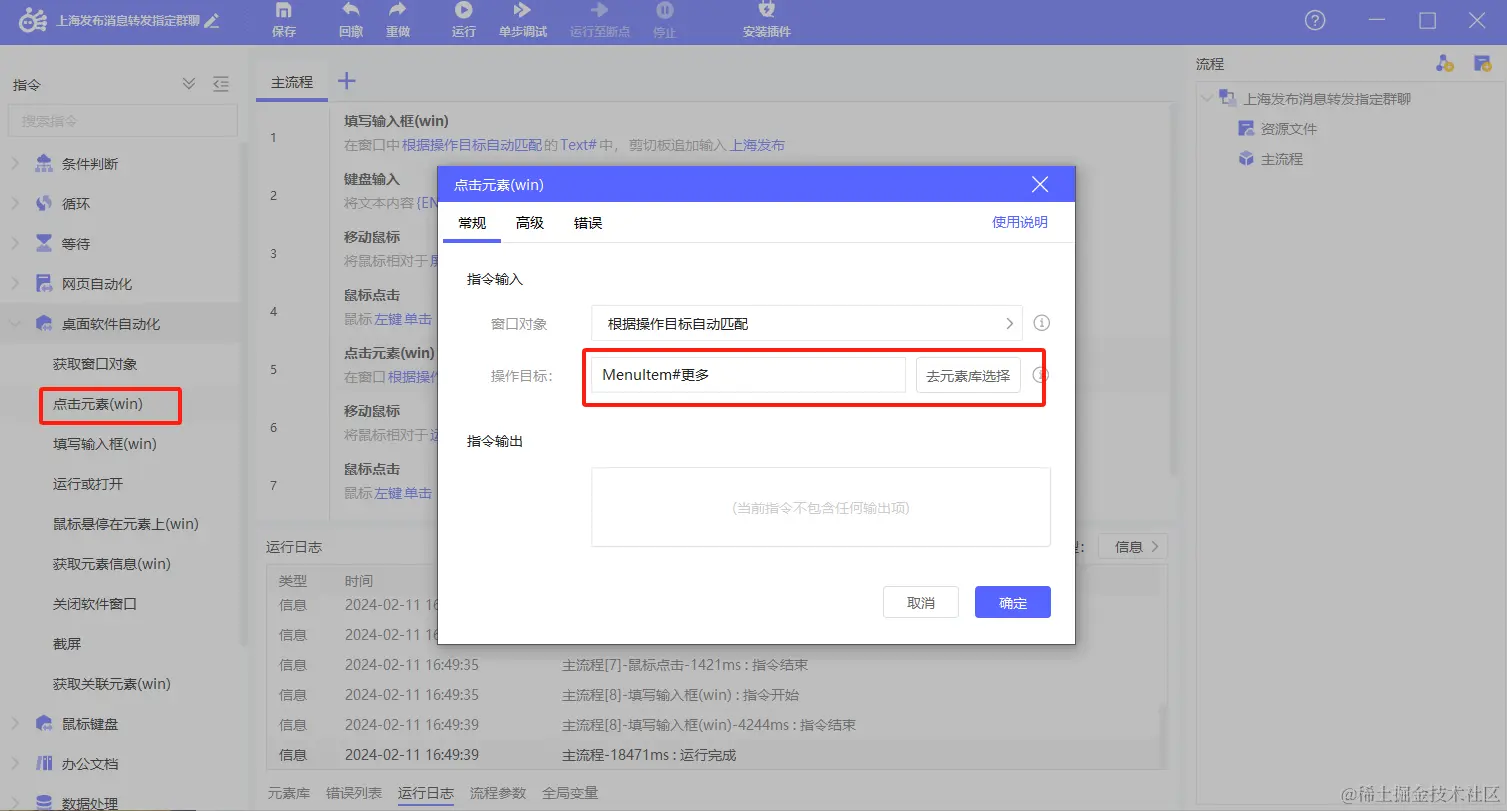 双击填写输入框指令,窗口对象选择根据目标匹配