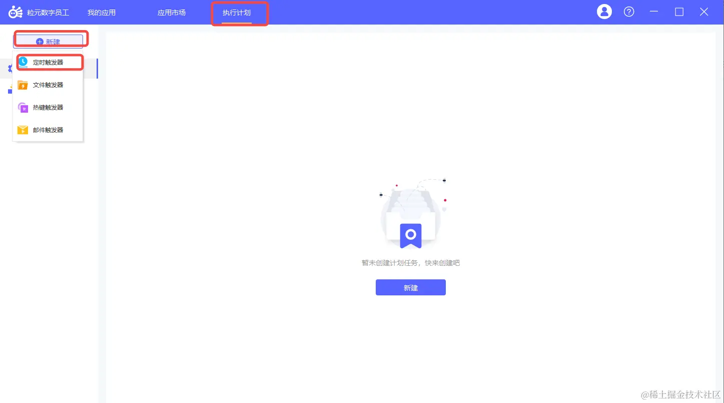 指令配置好了,怎么定时触发呢,这里切换到执行计划,选择定时触发器