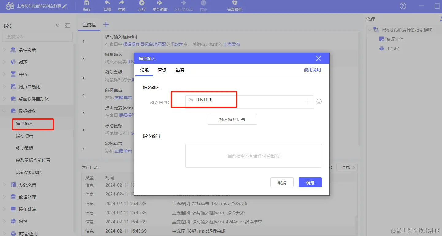 填写完输入框之后,我们需要自动点击回车,这里需要用到键盘输入指令