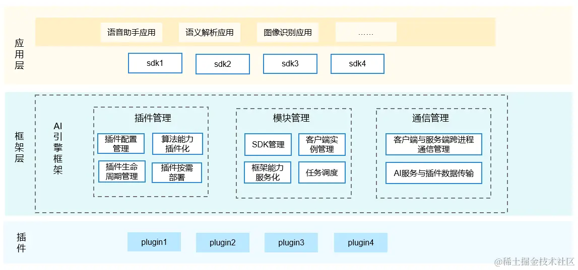 AI 业务子系统是 OpenHarmony 提供原生的分布式 AI 能力的子系统。本次开源范围是提供了统一的 AI 引擎框架,实现算法能力快速插件化集成。框架中主要包含插件管理、模块管理和通信管理等模块,对 AI 算法能力进行生命周期管理和按需部署。